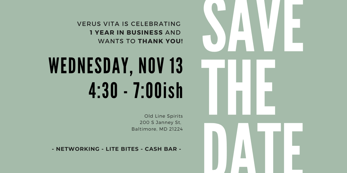 Verus Vita is turning one, and I’m throwing a celebration to thank YOU for your support over the past year. Entrepreneurship is no small thing, and having you in my corner has meant the world to me.